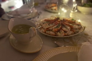 Grilled langoustine with garlic butter and Brussel sprout salad
