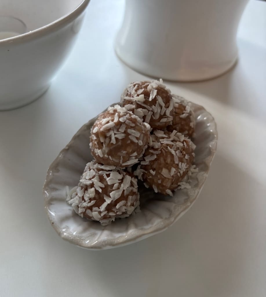 Mótið kúlur og veltið þeim upp úr kókosmjöli eða hjúpið með súkkulaði.